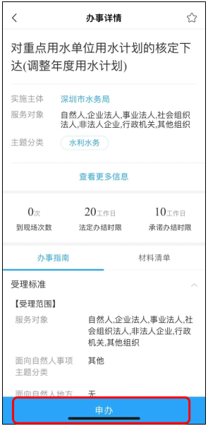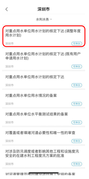 下面,我们以年用水量十万立方米以上用户申报“对重点用水单位用水计划的核定下达(调整年度用水计划)”事项为例,对手机APP操作进行简要说明。