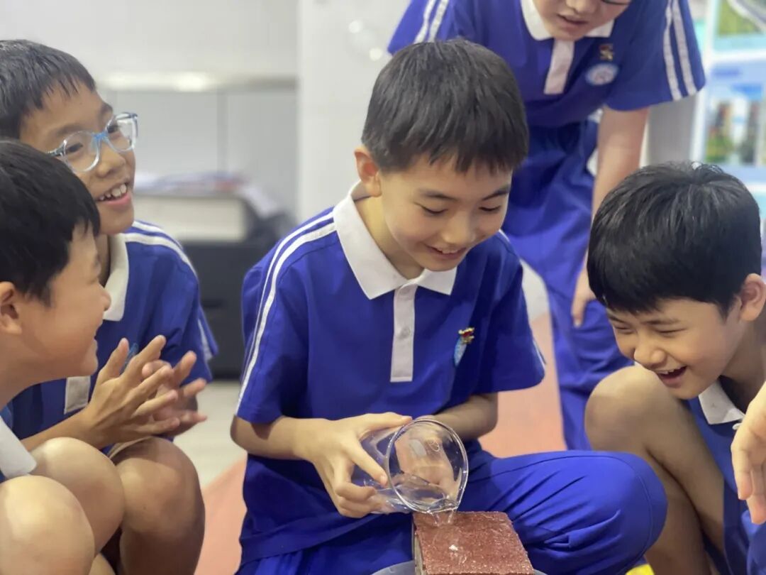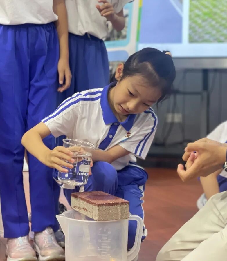 在荔园小学专场,科普课堂以动画视频与实景图片直观呈现植草沟、雨水花园等海绵设施的运行原理。学生们通过对比透水砖与水泥地的渗水速度,直观理解“会呼吸的城市”。更有趣的是肢体戏剧环节,孩子们以创意动作模拟雨水收集器,在欢笑中深化对海绵城市蓄水功能的认知。